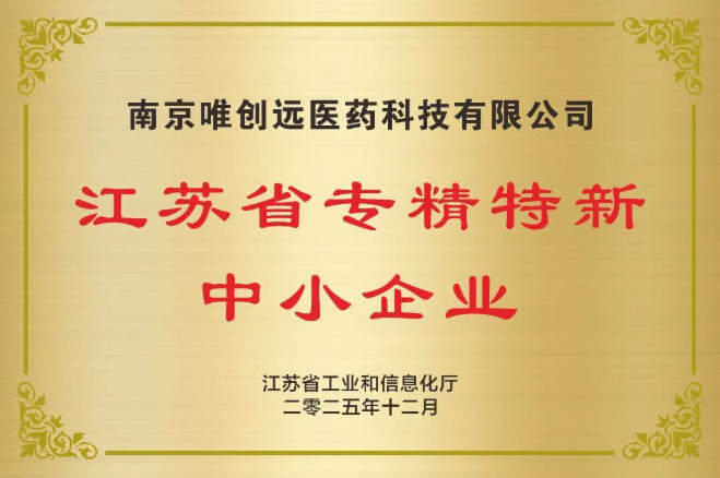 喜报︱唯创远医药通过江苏省2025年度“专精特新中小企业”认定